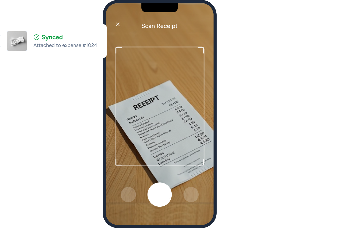 Never lose a receipt again. Take a photo with your phone, attach it to the expense record, and add notes for clarity. Your accountant will love you.