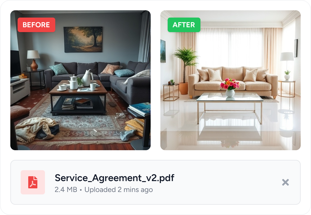 A picture is worth a thousand words. Upload before and after photos to prove the quality of your work. Attach documents to keep everything in one central place.