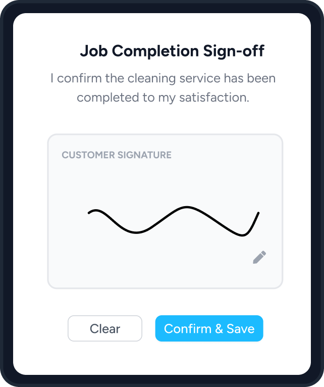 Get sign-off instantly. Collect customer signatures directly on your mobile or tablet upon job completion to confirm satisfaction.