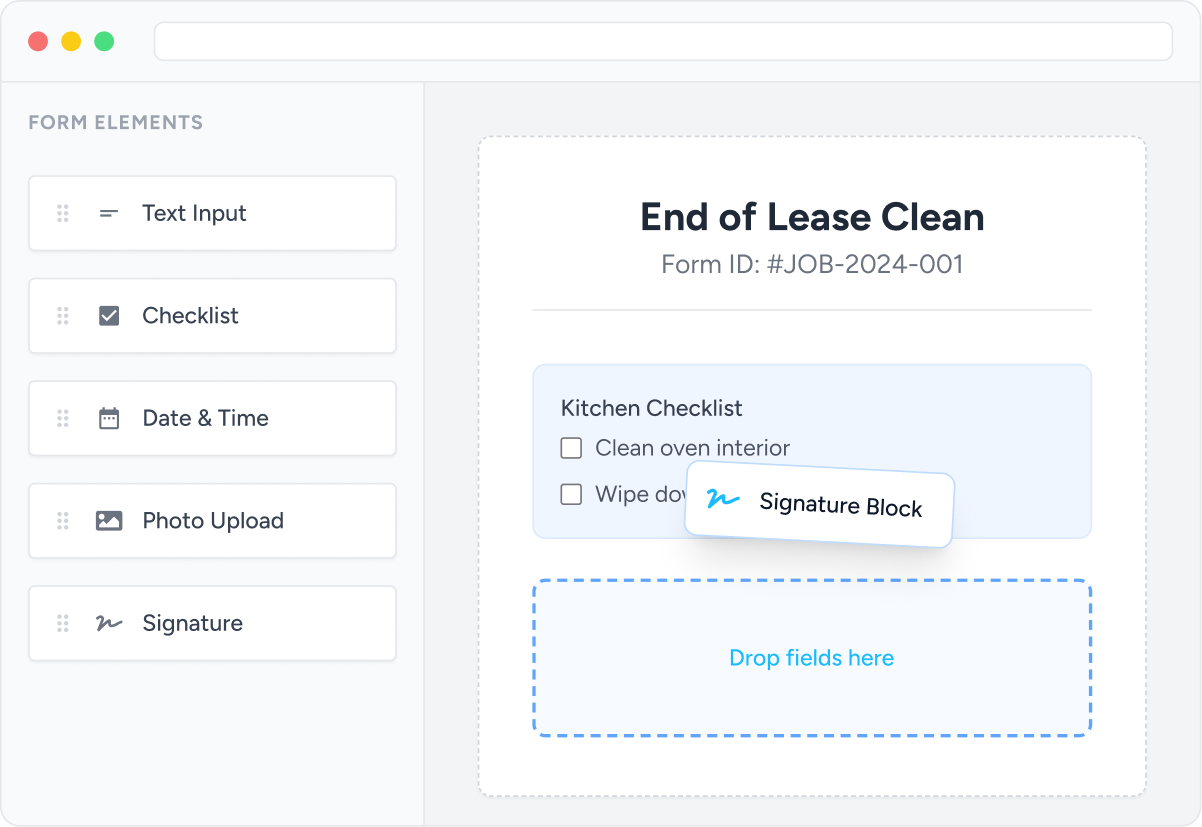 Build custom forms, collect signatures, and capture job details digitally. No coding required.