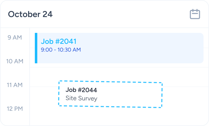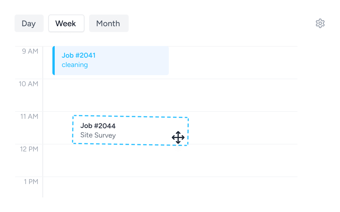 Visualise your workload with Day, Week, and Month views. Simply drag and drop jobs to assign them to team members.