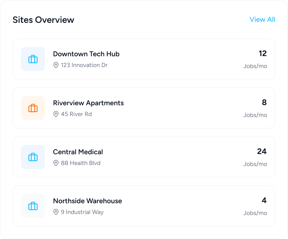 Keep track of every location you serve. Access detailed cleaning history per site to ensure quality consistency and improve customer satisfaction.