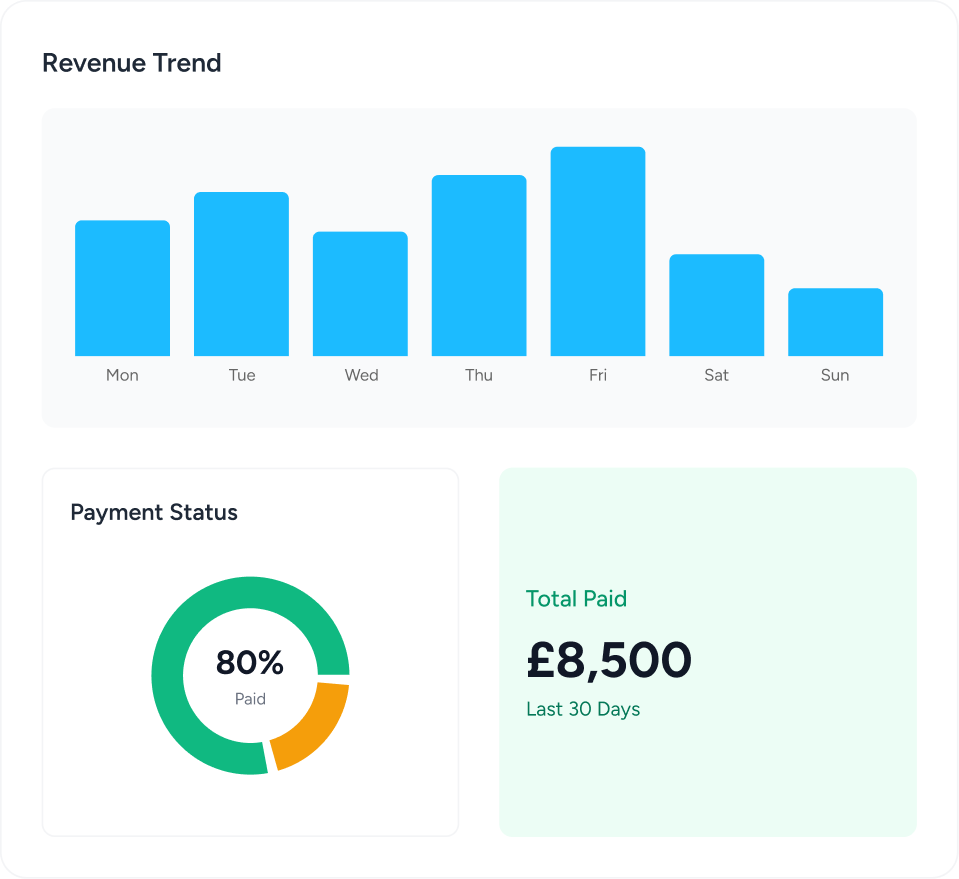 See jobs, staff performance, and income in one place — without spreadsheets.