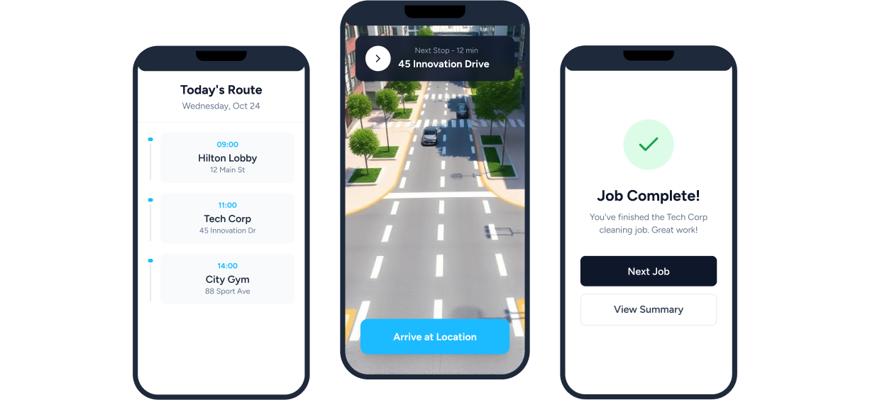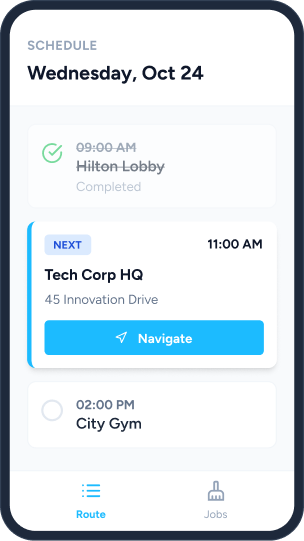 Equip your cleaners with a powerful mobile app. They can view their daily routes, get turn-by-turn navigation, and mark jobs as complete without calling the office.