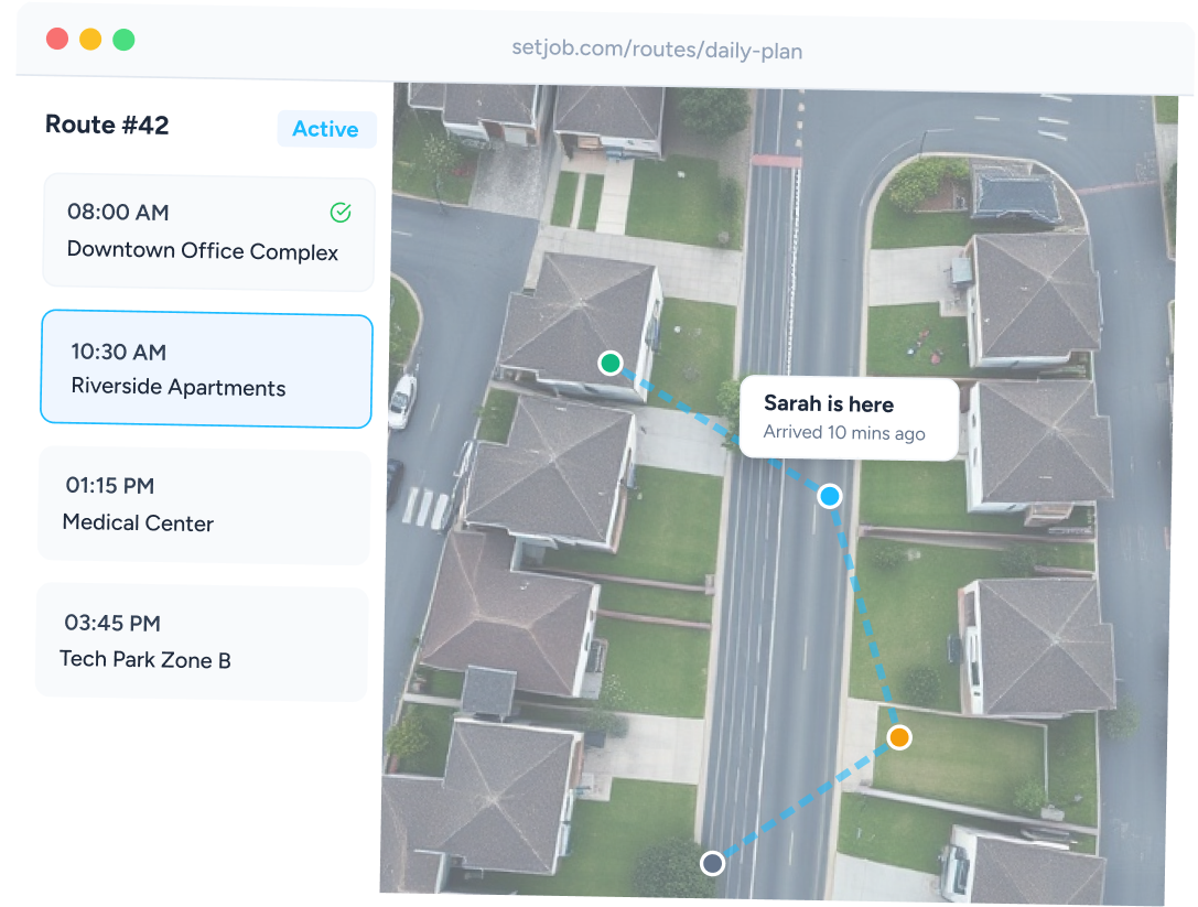 Seamlessly integrated with your daily calendar. When you move a job, we automatically recalculate the route for the entire team.