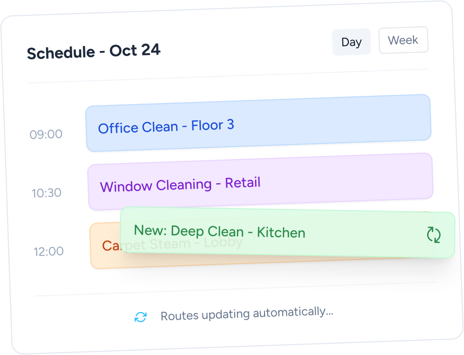 Set it and forget it. Perfect for daily, weekly, and recurring cleaning contracts.