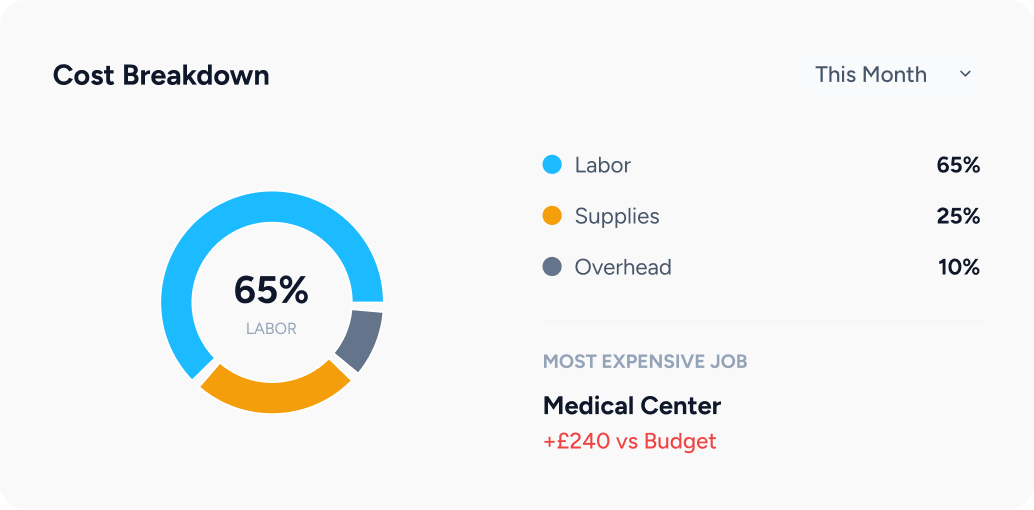 Link hours to specific cleaning contracts. See exactly how long each clean takes to ensure your pricing is profitable and efficient.
