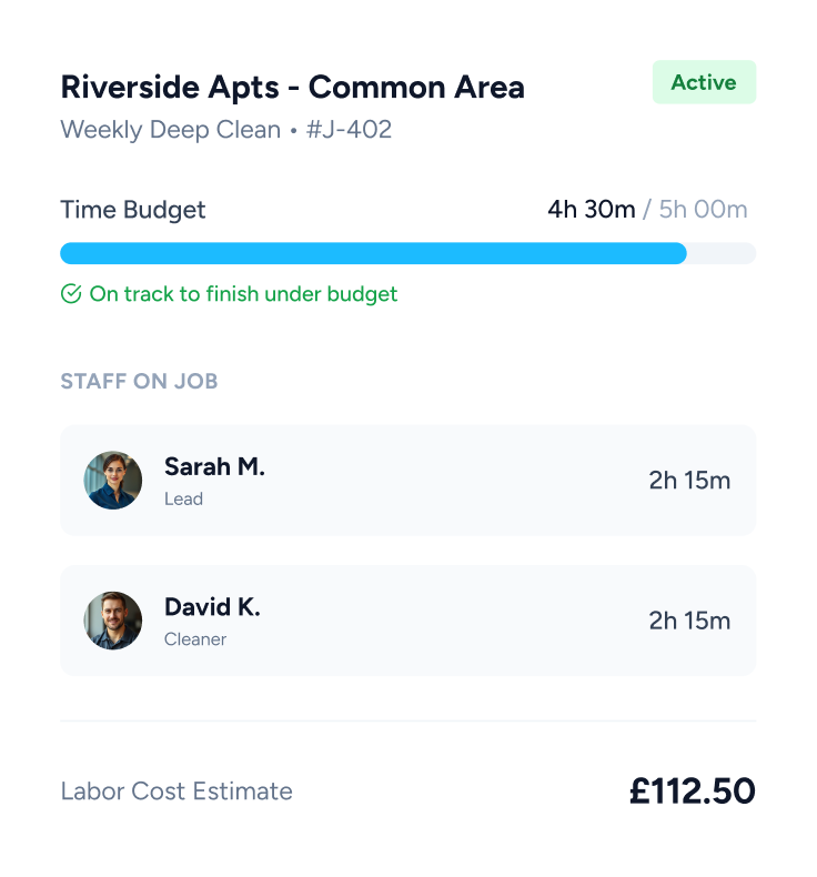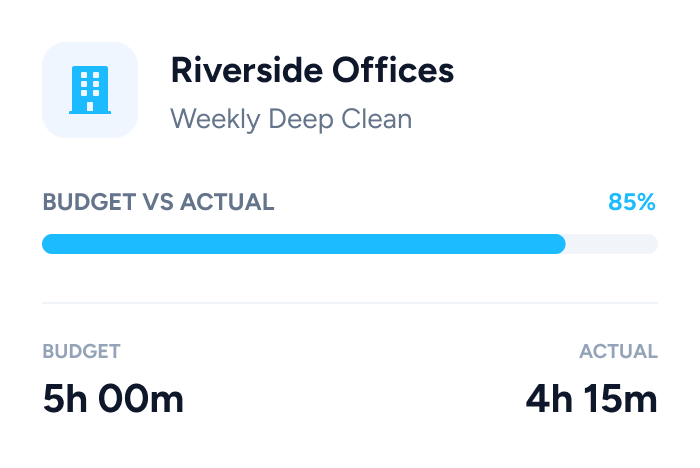 Link hours to specific cleaning contracts to see exactly how long each clean takes.